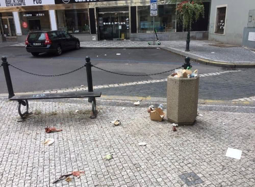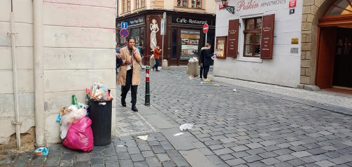 „Nepořádek v ulicích nedopustíme!“ píše starosta ke svým fotkám přetékajících košů, odpadků poházených po ulicích. „Obrázek, který bohužel občas zná každý z nás, kdo v centru Prahy bydlíme. A s rostoucím přílivem turistů je to ještě horší. Potvrzuje to také zvýšený počet telefonátů na naši Pohotovostní linku úklidu, kterou Praha 1 zřídila. Tomu je teď snad konec,“ říká starosta.